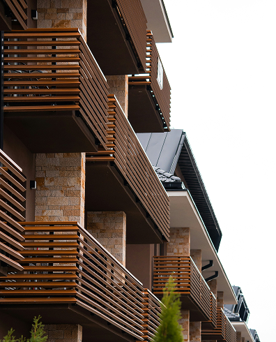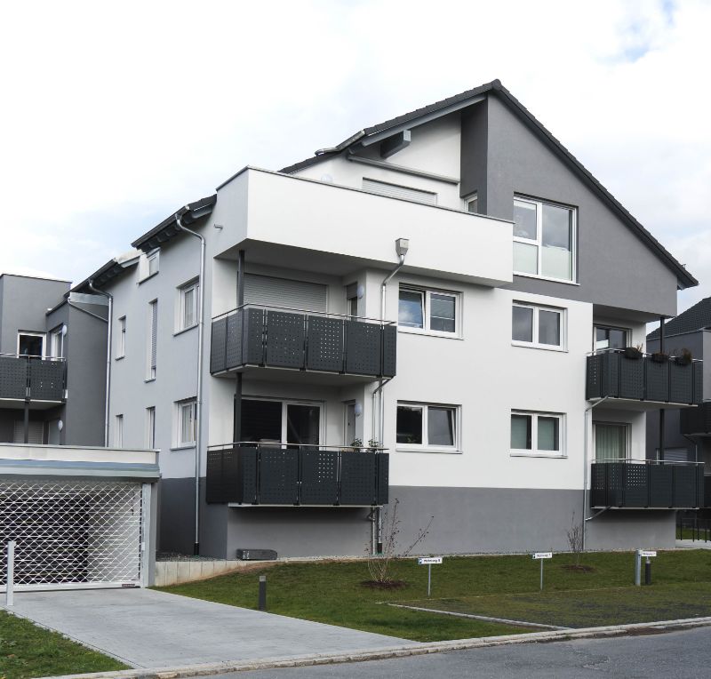 Eine Entwicklung am Hang mit gestaffelten Gebäuden und verdeckter Tiefgarage, die zusätzliche Wohnfläche erschließt und betriebliche Effizienz verbessert.