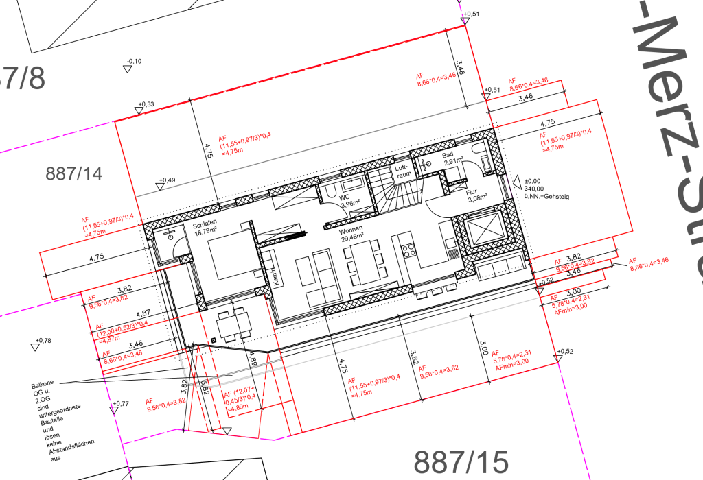Zudem wurde die zulässige Gebäudehöhe in Abstimmung mit dem Stadtplanungsamt an die bestehende Nachbarbebauung angepasst, um ein harmonisches Gesamtbild zu bewahren. Die Notwendigkeit, trotz dieser Höhenbegrenzung möglichst viel nutzbare Wohnfläche zu schaffen, verlangte nach kreativen architektonischen Konzepten. Erschwerend kam hinzu, dass kein verbindlicher Bebauungsplan für das Grundstück existierte – eine Situation, die im innerstädtischen Kontext häufig vorkommt und große planerische Flexibilität erfordert.